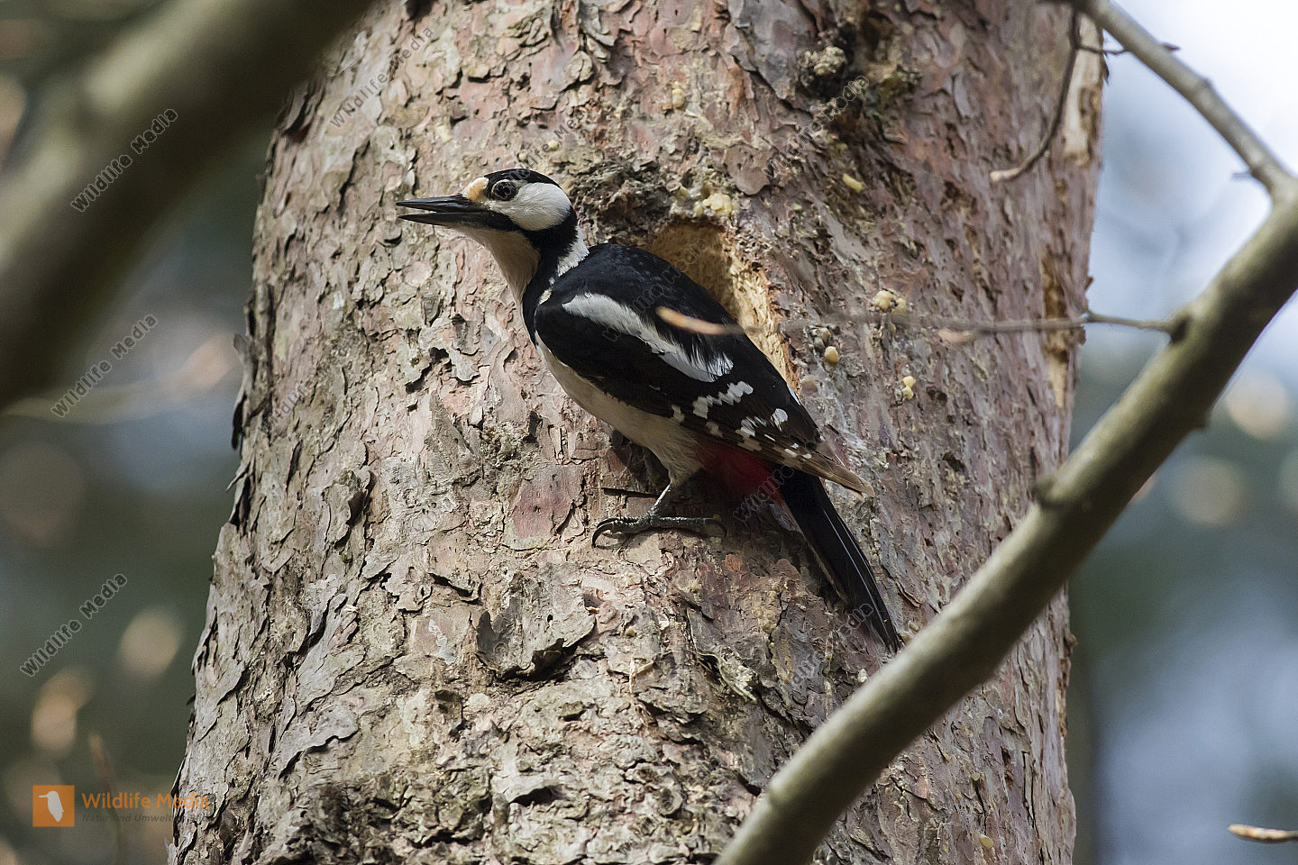 Ein Buntspecht bei der Arbeit