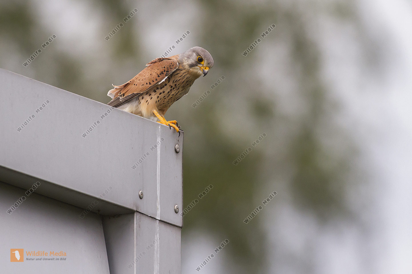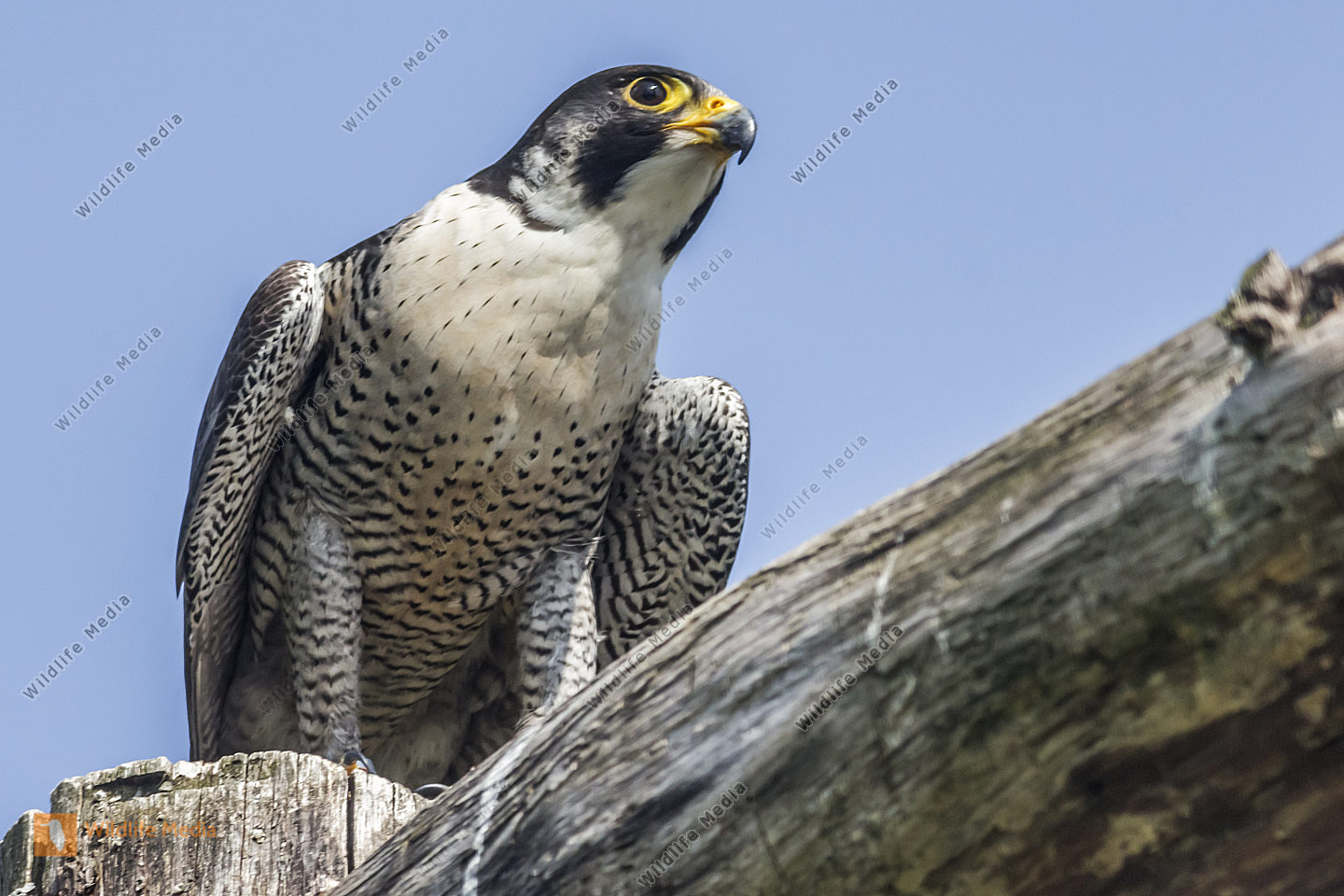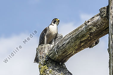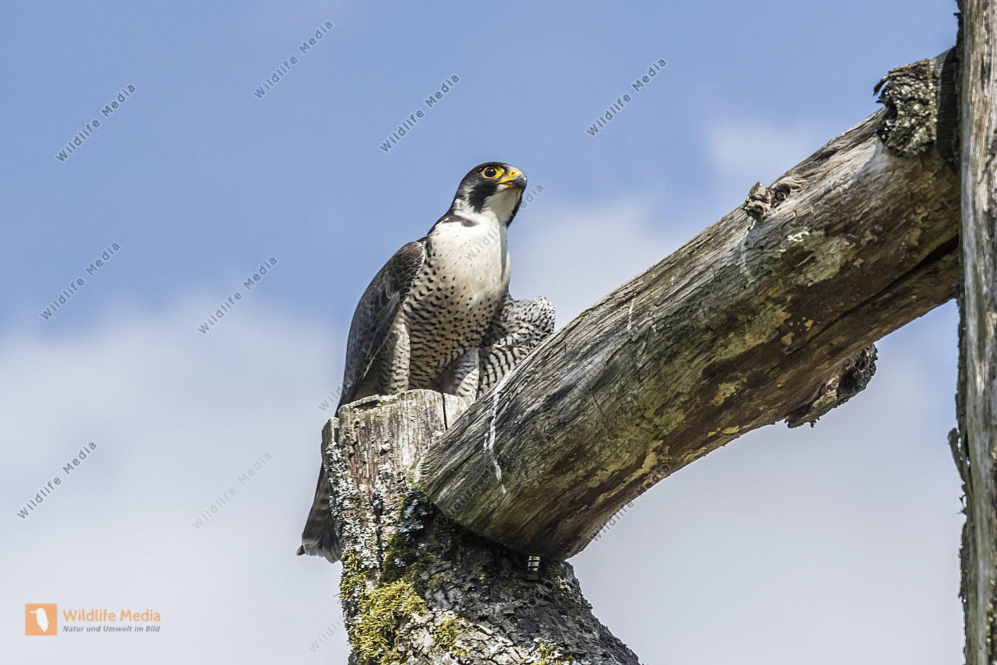 Habicht Accipiter gentilis Männchen auf einem Baumstumpf