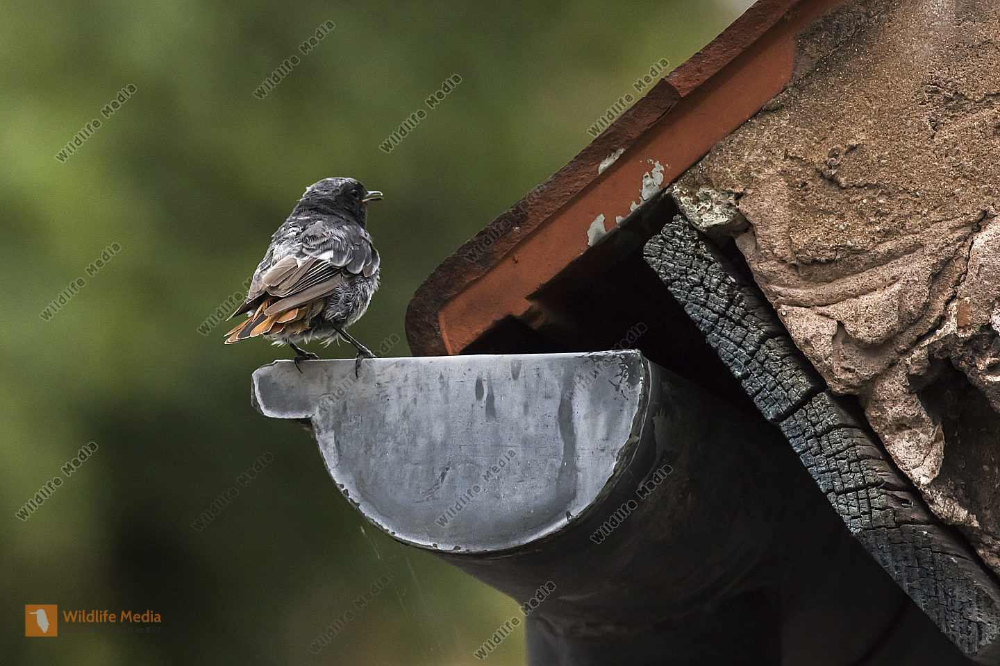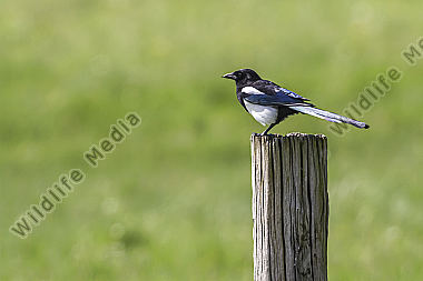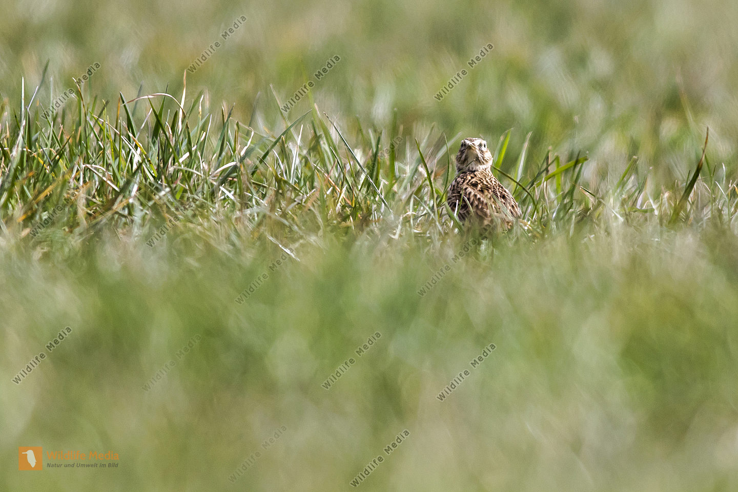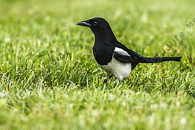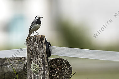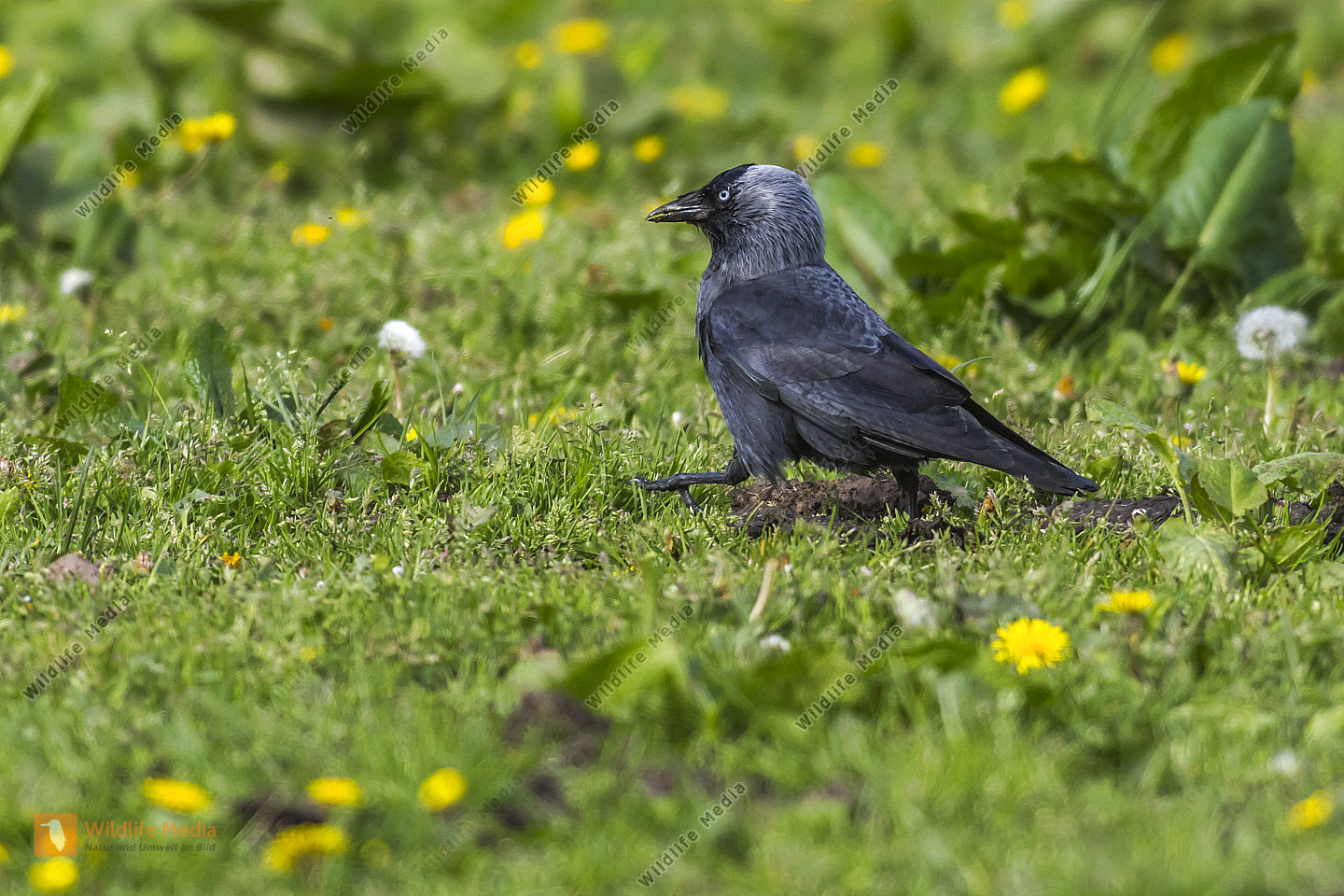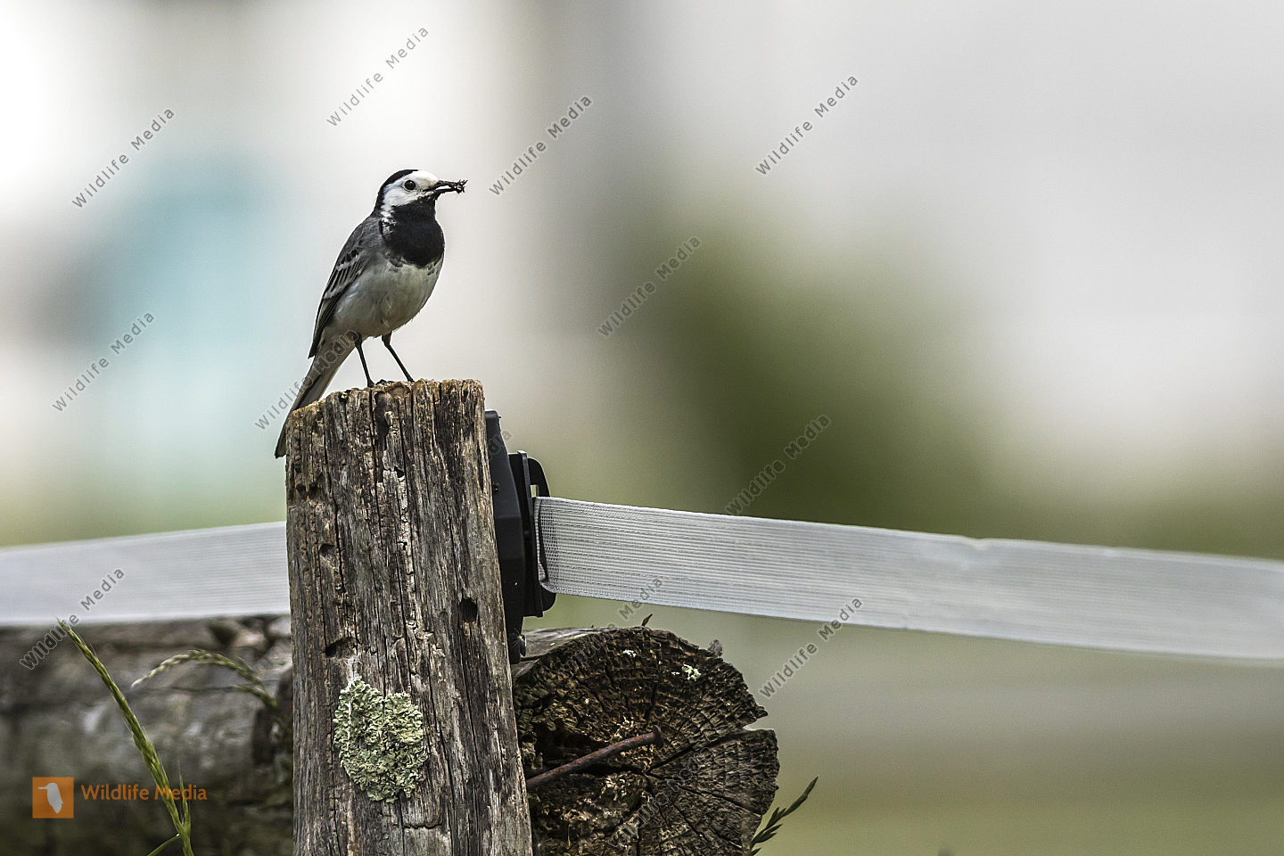 Ein Trauerschnäpper auf Nahrungssuche am Rand einer Wiese