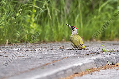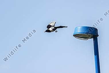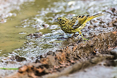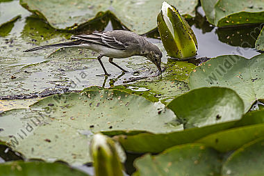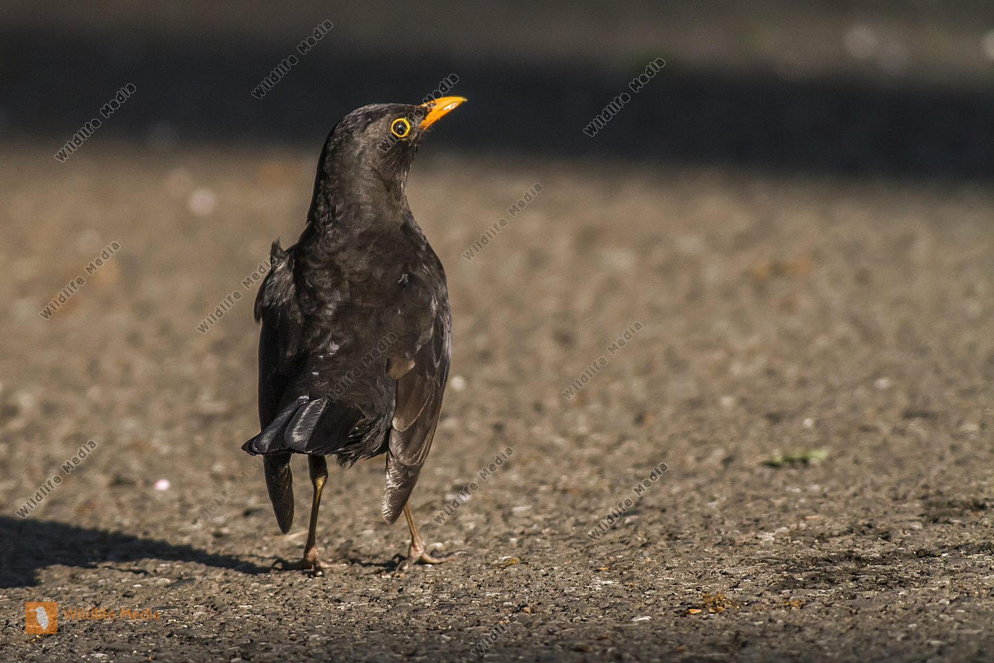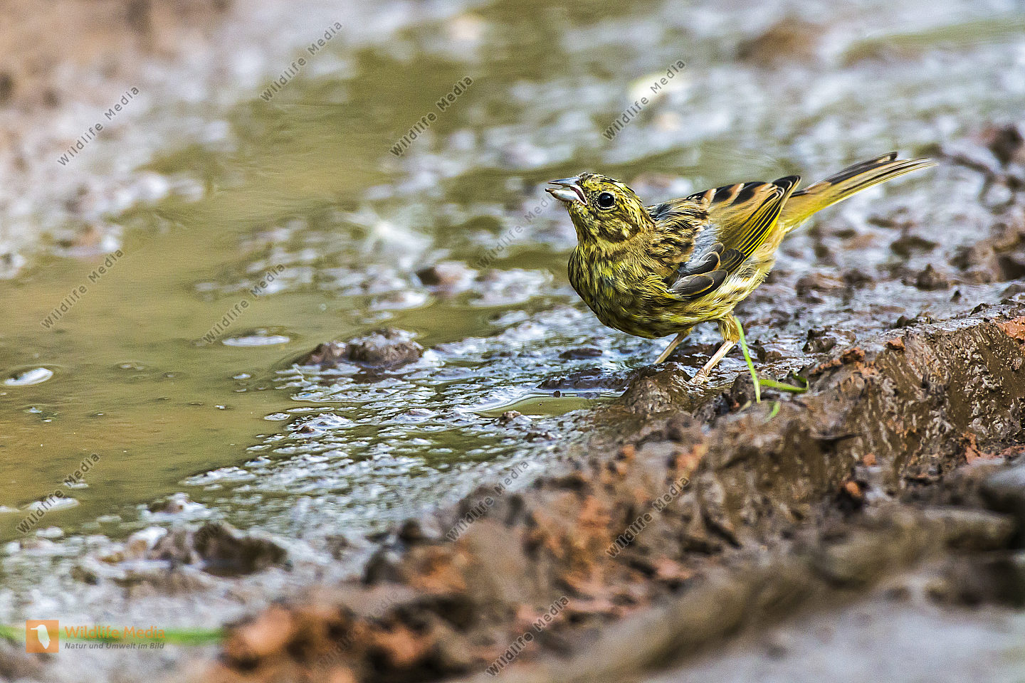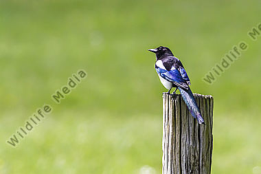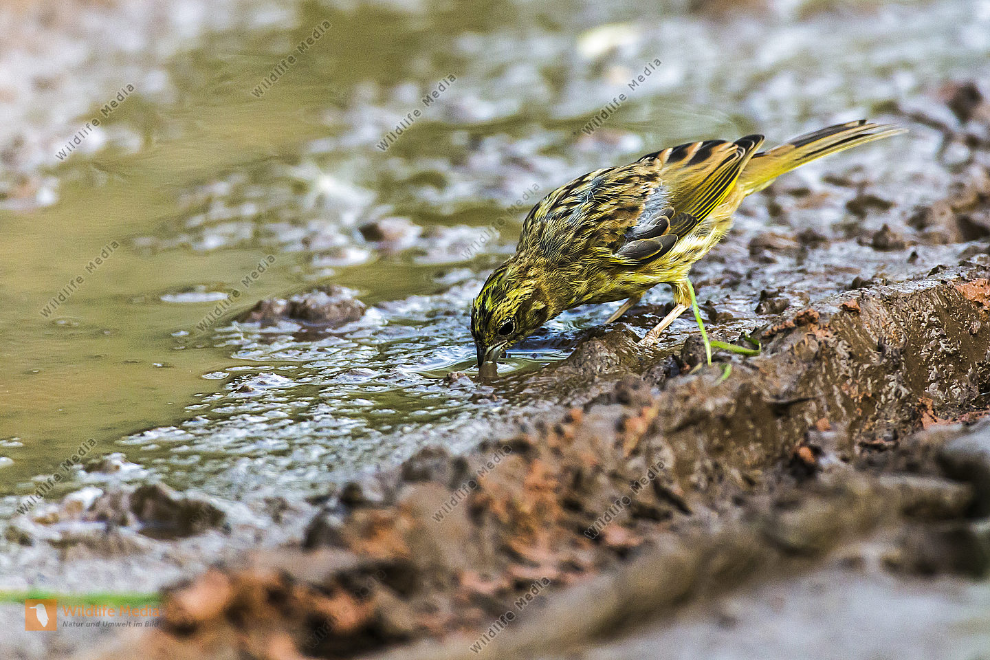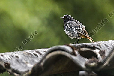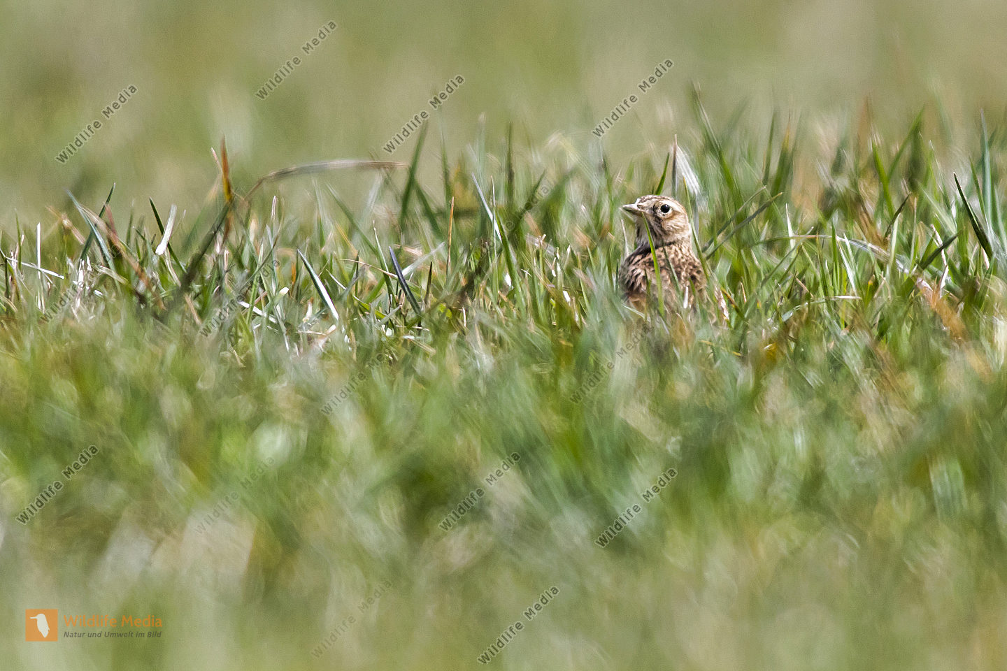 Ein Trauerschnäpper auf Nahrungssuche am Rand einer Wiese