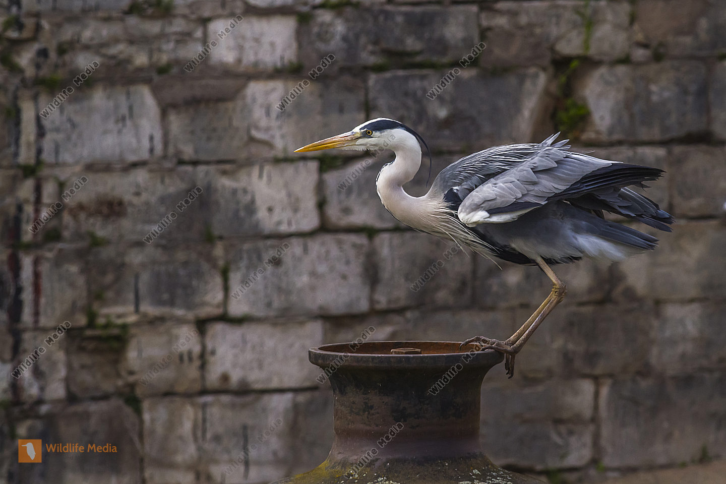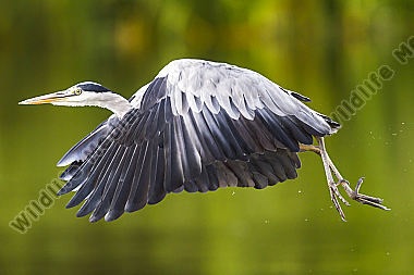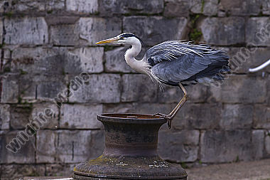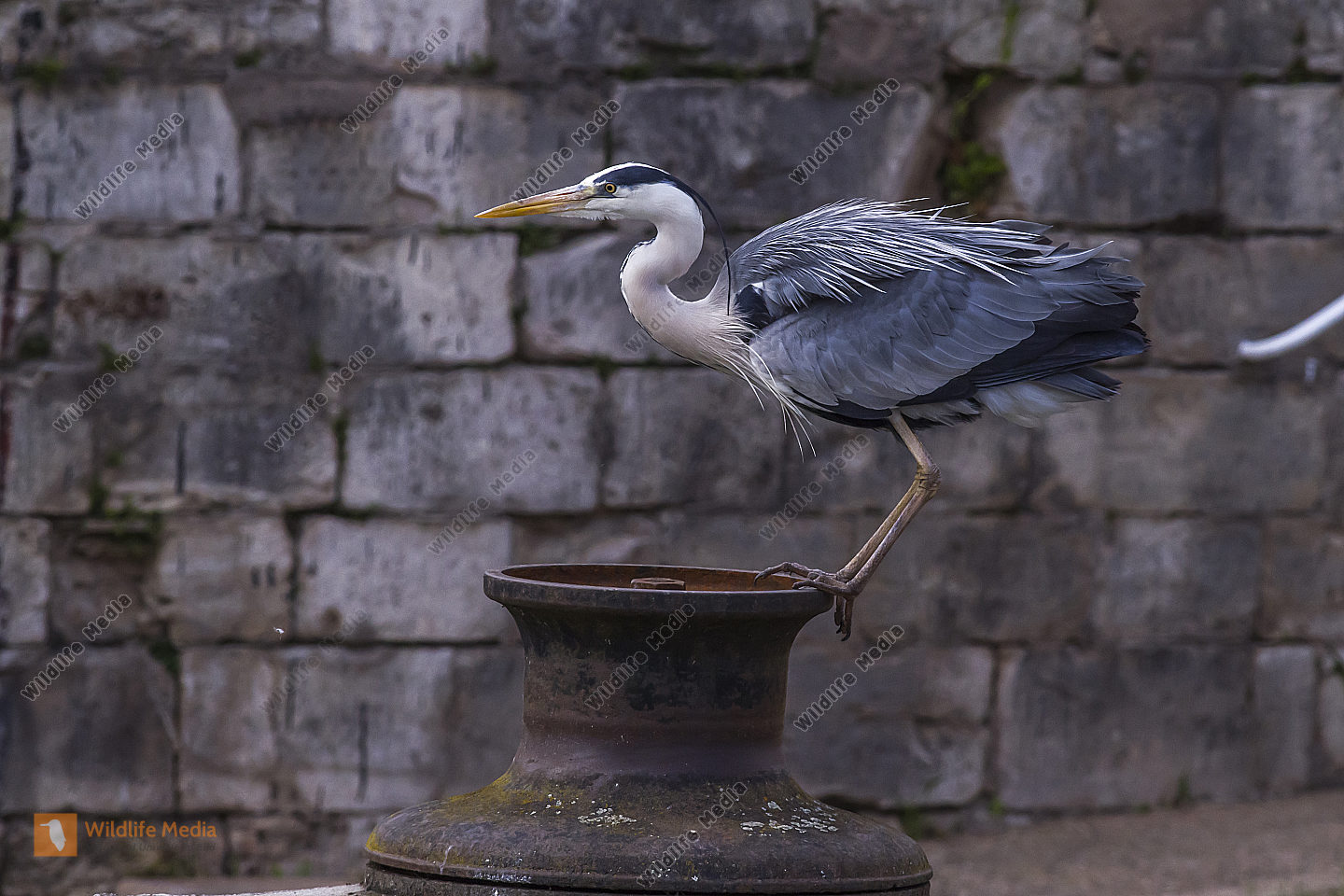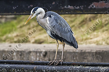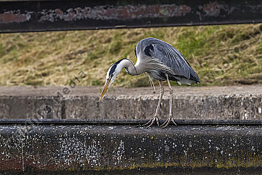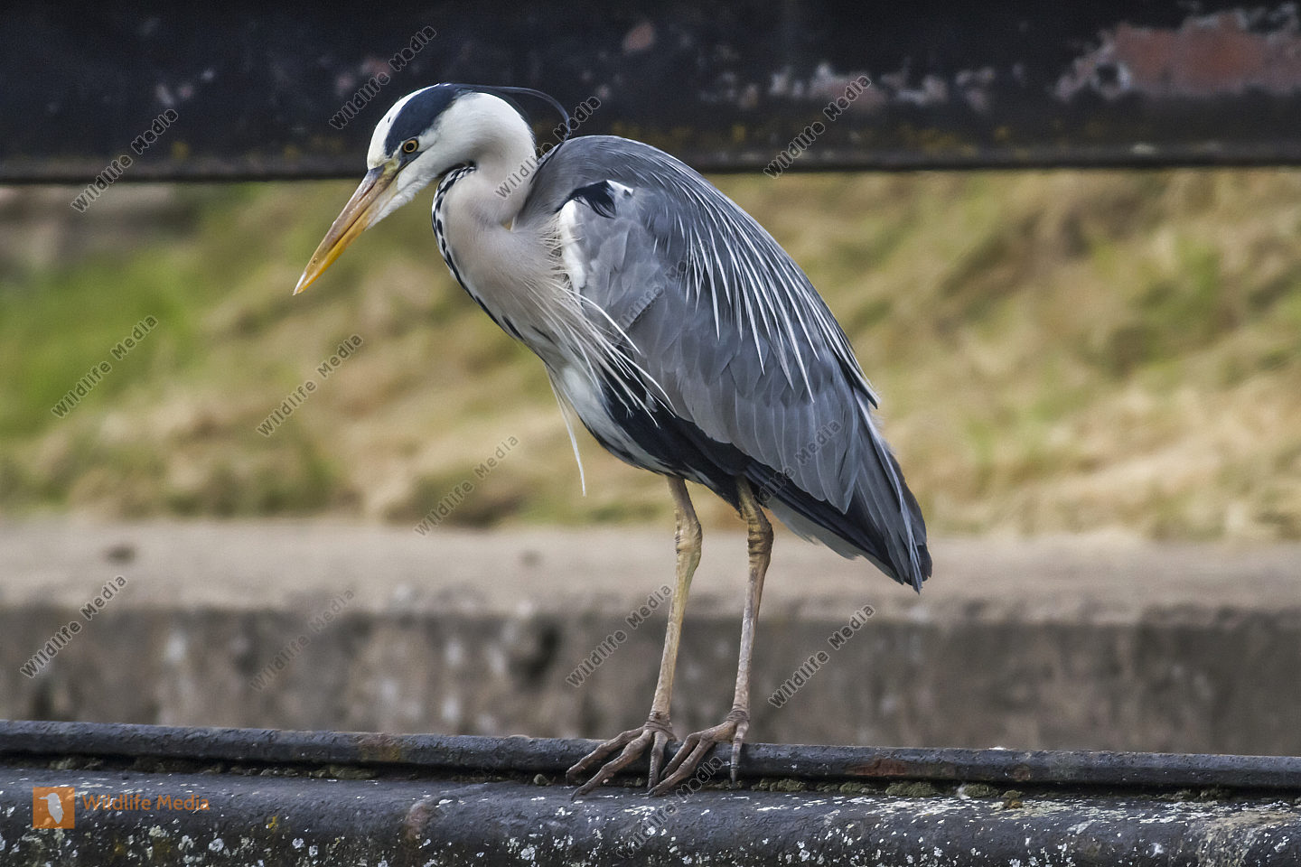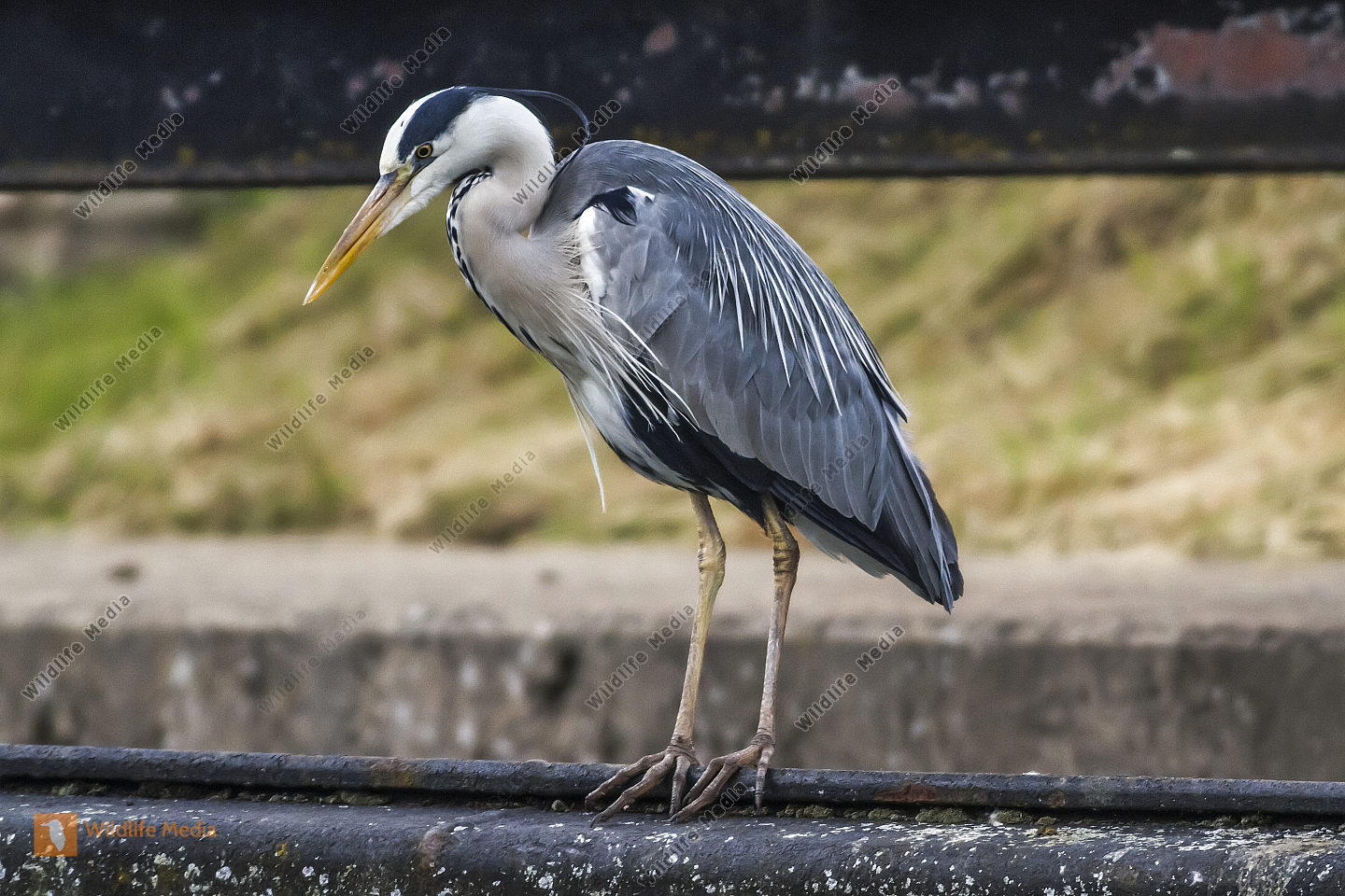 Ein Graureiher auf der Suche nach Nahrung im Beeder Bruch