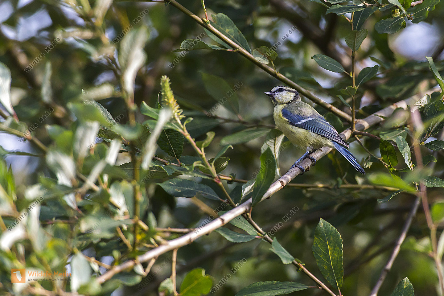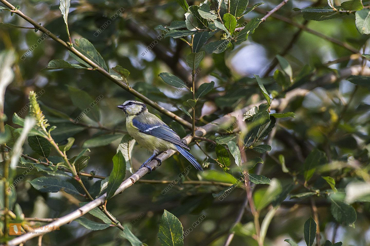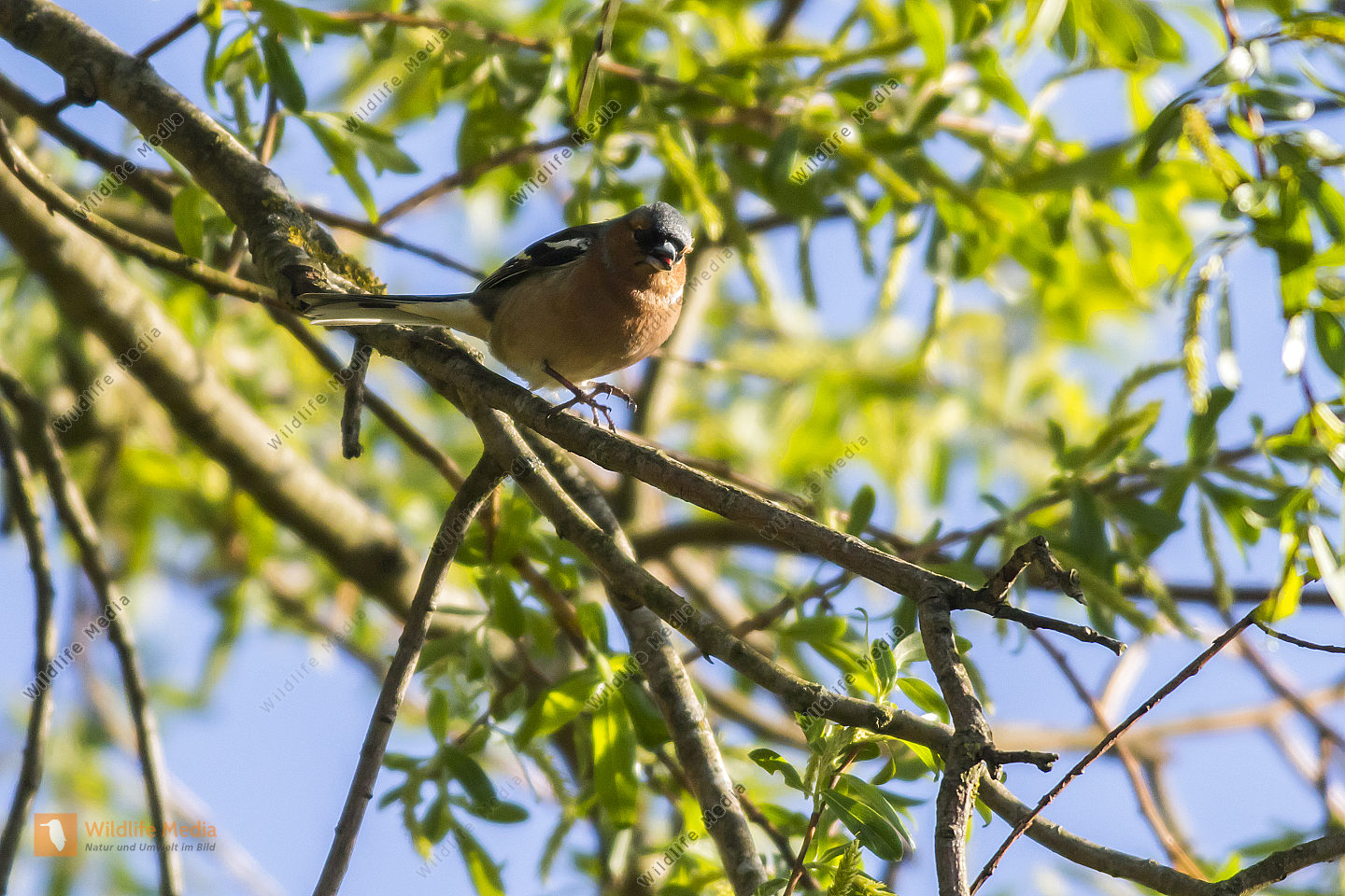 Ein Eisvogel späht aus dem Geäst heraus nach Fischen im Teich