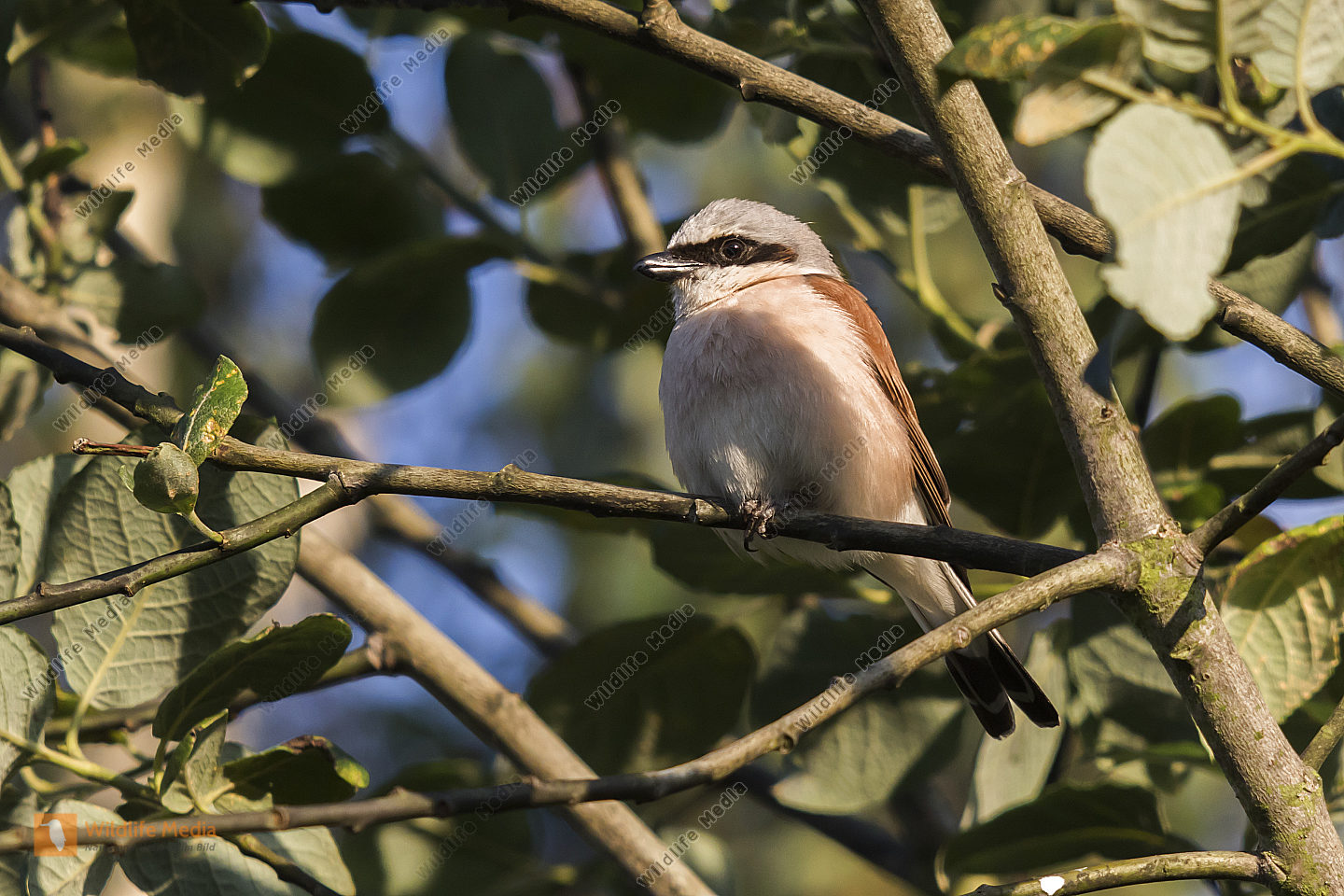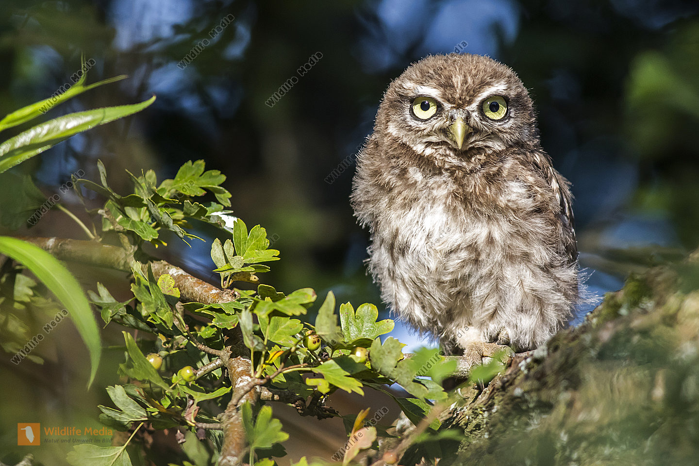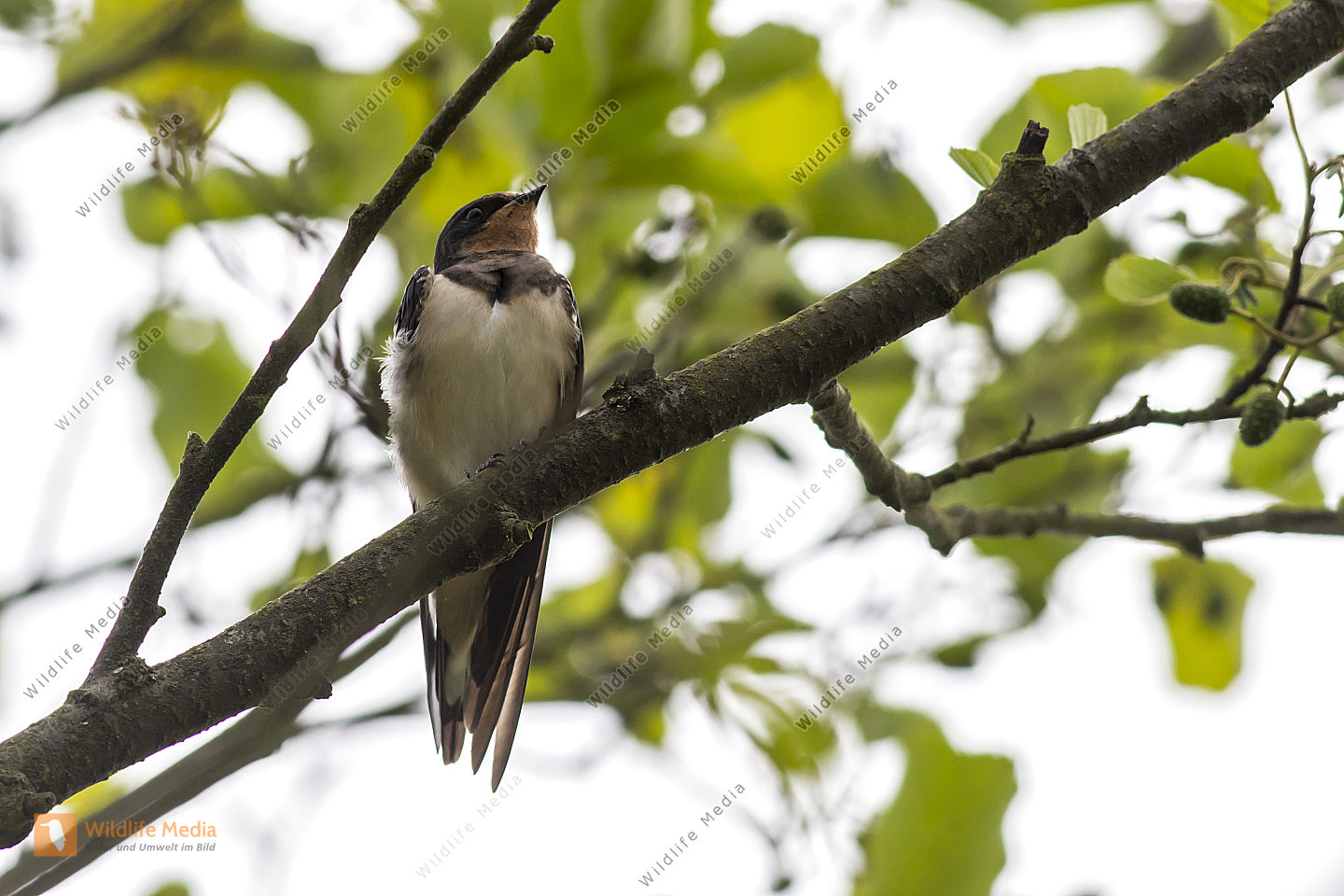 Ein Eisvogel späht aus dem Geäst heraus nach Fischen im Teich