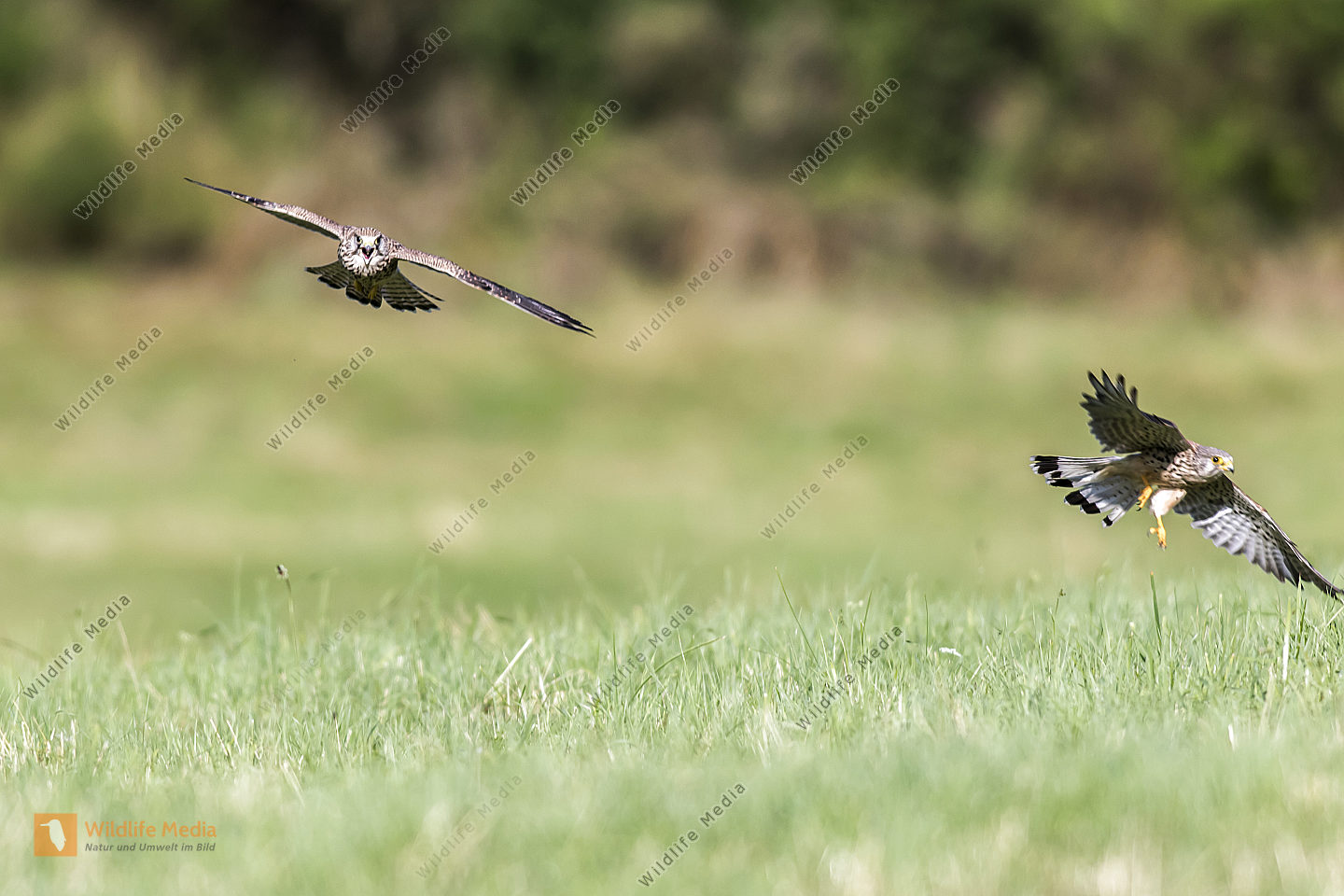 Um Beute kämpfende Mäusebussarde Buteo buteo