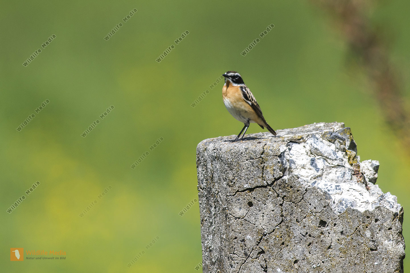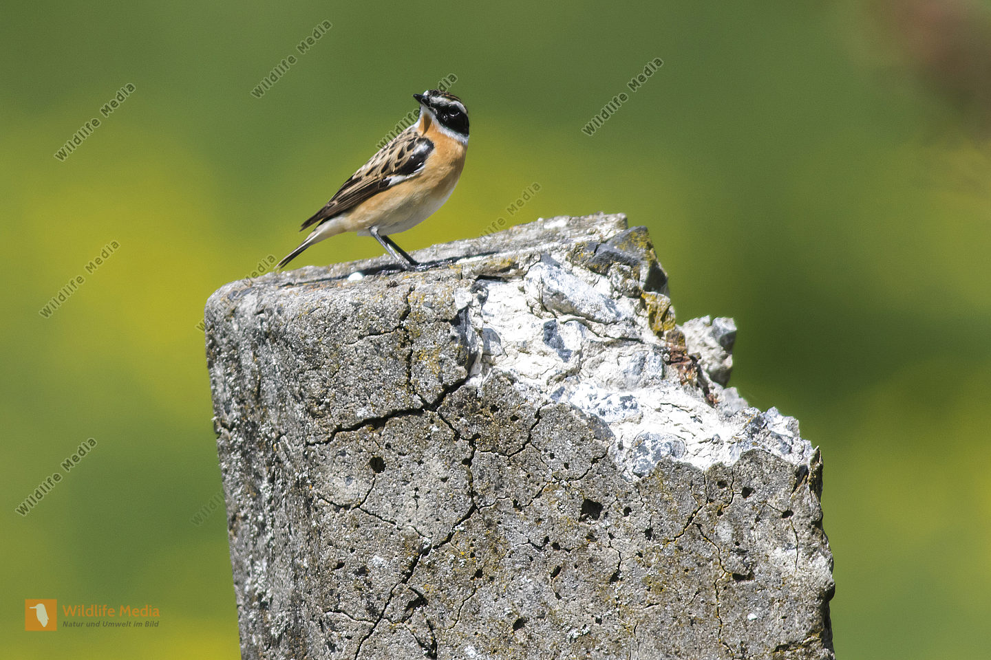 Ein Schwarzkehlchen auf seiner Sitzwarte