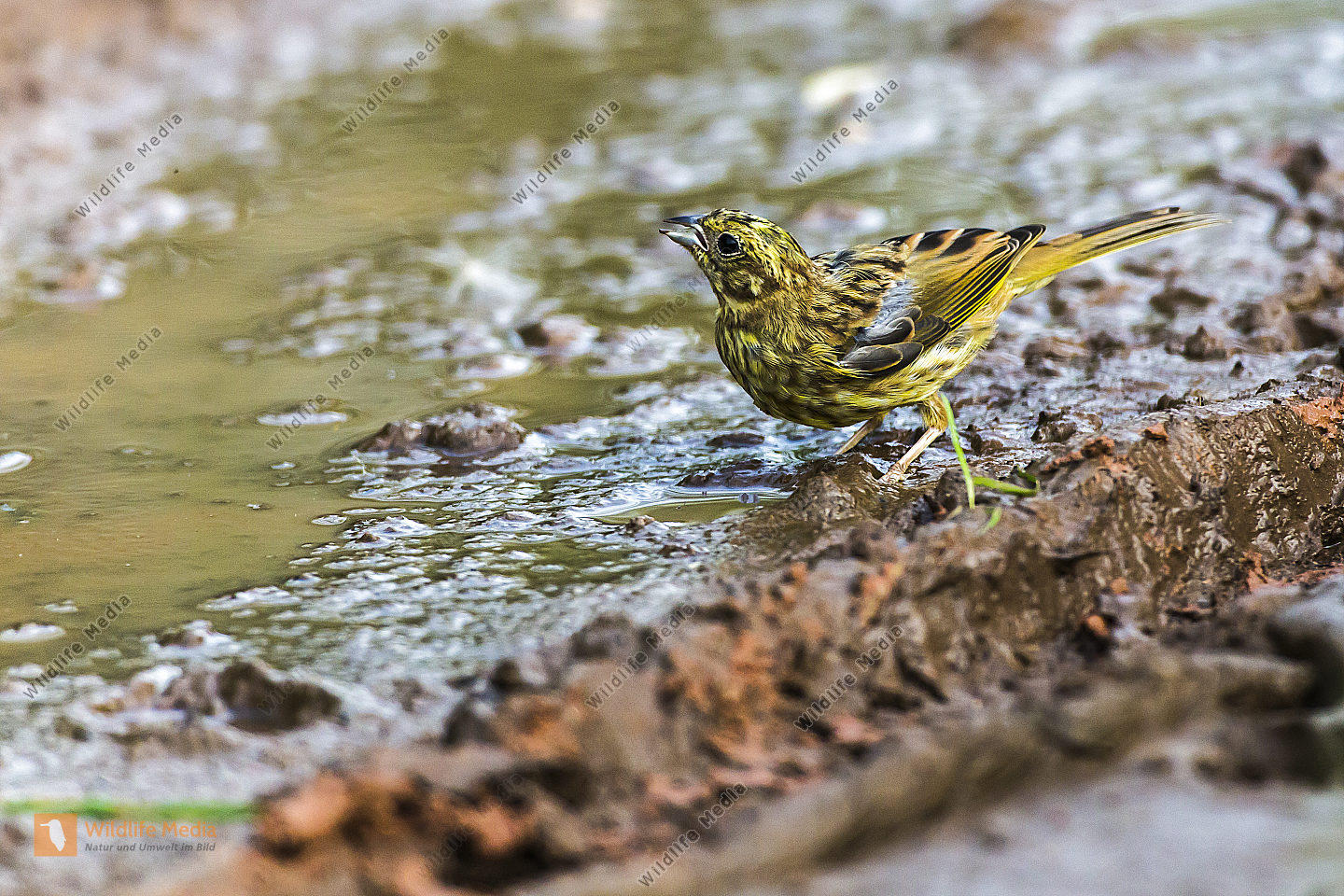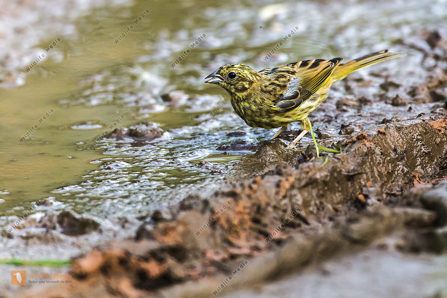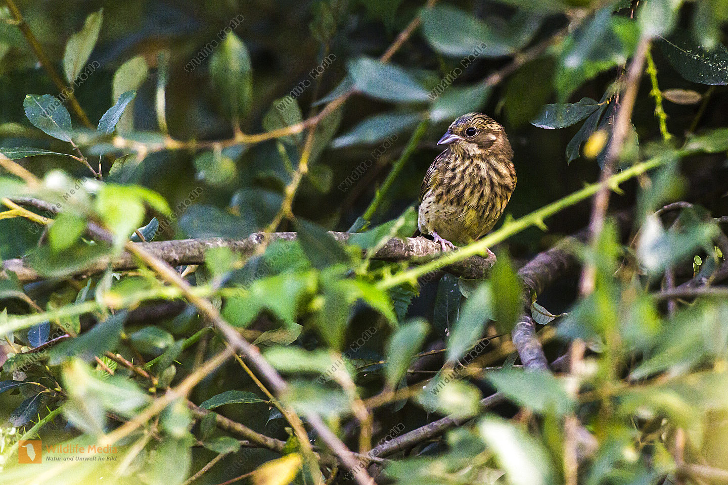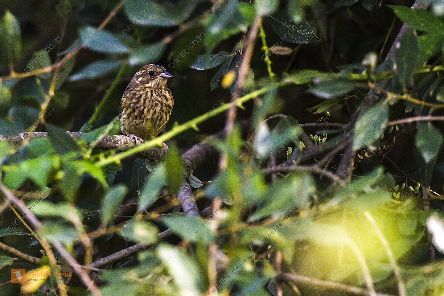 Ein Wintergoldhähnchen auf der Suche nach Nahrung