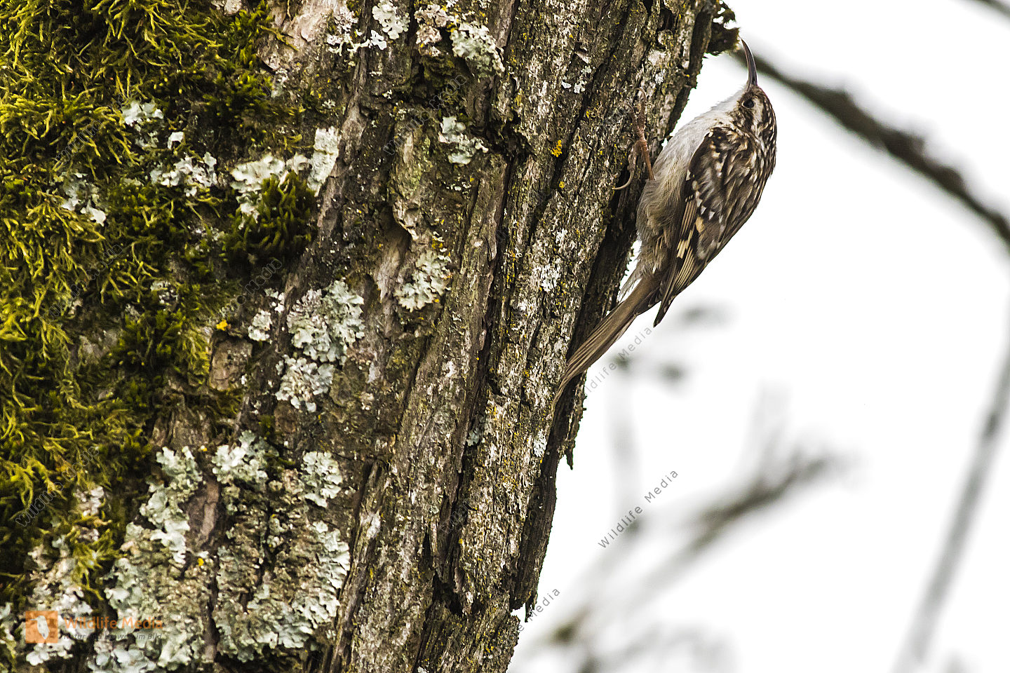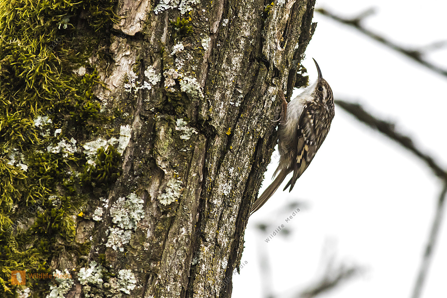 Ein Gartenbaumläufer sucht am Baumstamm nach Nahrung