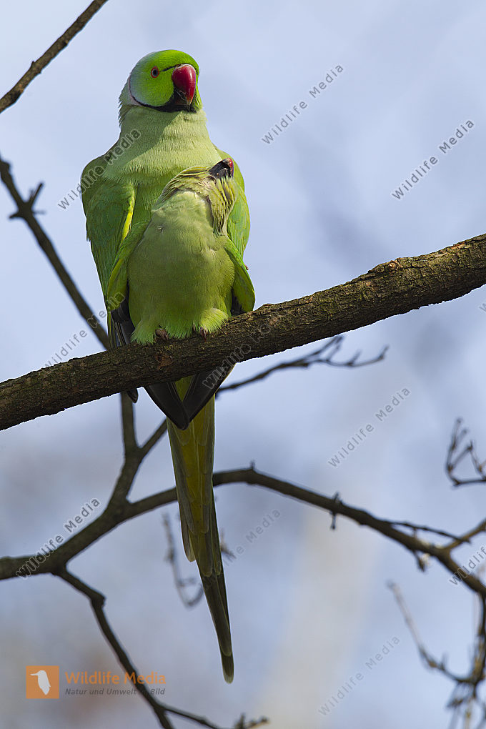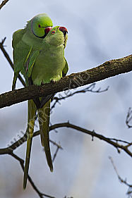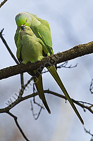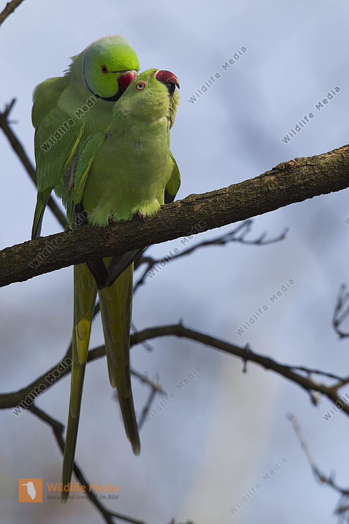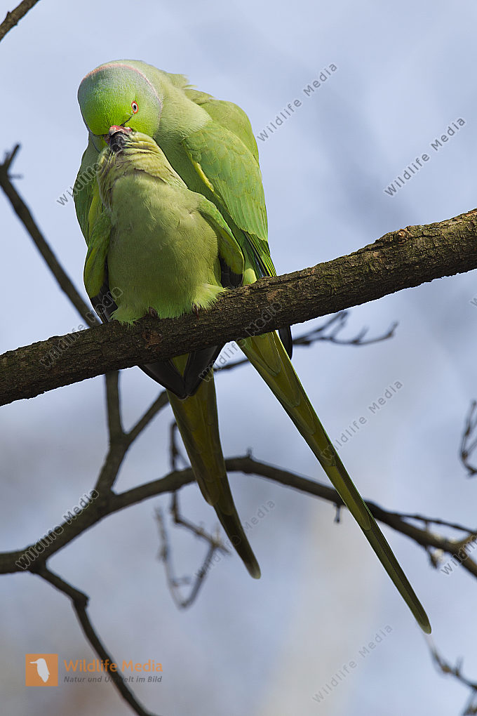 Halsbandstittichebei der Paarung