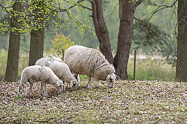 Heidschnucken Ovis aries in der Lüneburger Heide