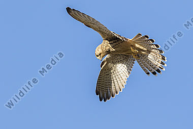 Ein fliegender Turmfalke auf der Suche nach Beute