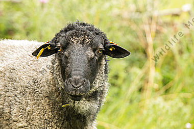 Walliser Schwarznasenschaf Ovis aries auf der Weide