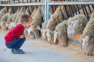 Jacobsschaf-Lämmer Ovis aries im Stall
