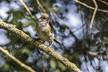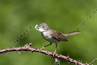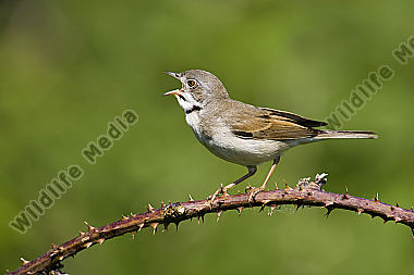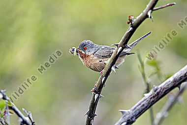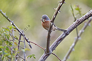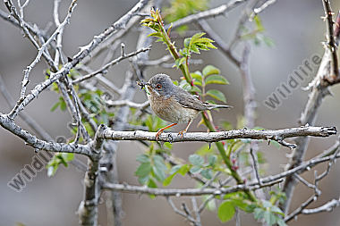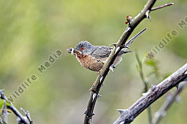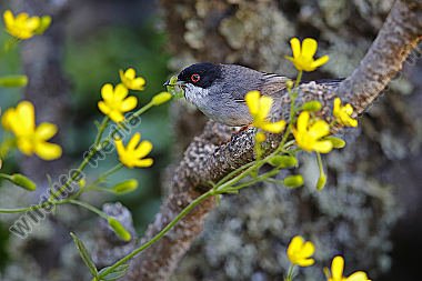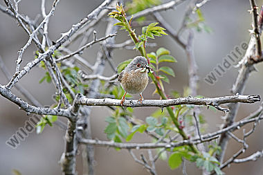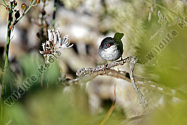 Möchsgrasmücke Sylvia atricapilla mit Weißdornblüten