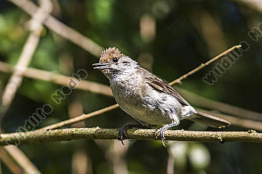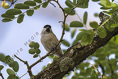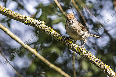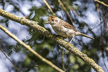 Eine Mönchsgrasmücke sitzt auf einem Ast